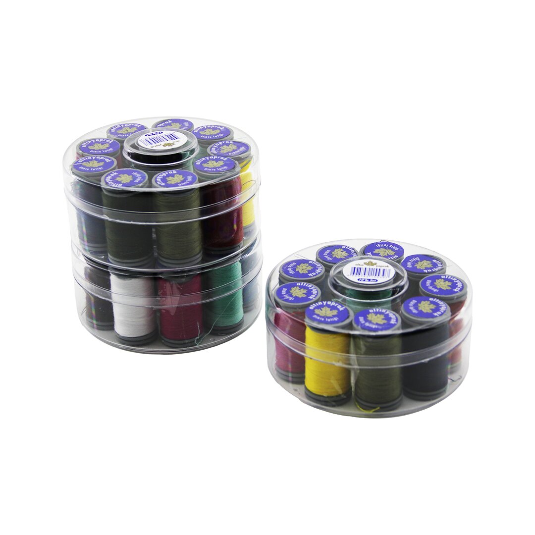 Altınyaprak Yuvarlak Set, dikiş projeleriniz için geniş bir renk yelpazesi sunar. 10 farklı renkte dikiş iplik makaraları içeren bu set, yuvarlak tasarımıyla dikkat çeker.
