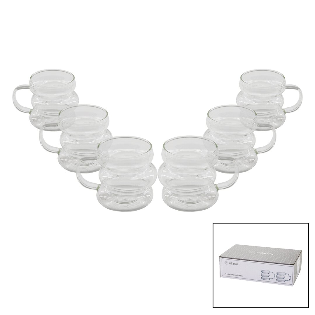 Barotti DMR-8601 6 Parça 3 Boğumlu Şeritli Kahve Yanı Cam Bardak seti, kahve keyfinizi tamamlayacak zarif bir tasarıma sahiptir. Şeritli ve 3 boğumlu yapısı ile dikkat çeken bu bardaklar, her türlü içecek sunumunda kullanılabilir.