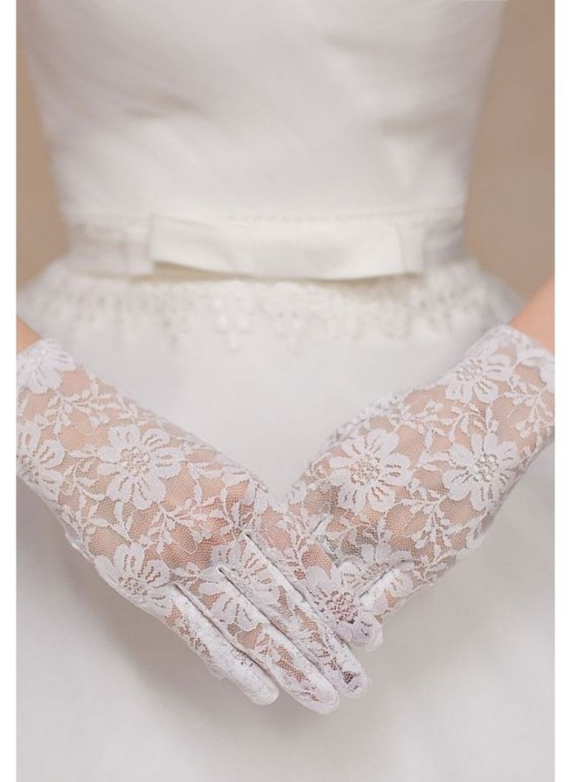 Beyaz Renk Kısa Dantelli Eldiven