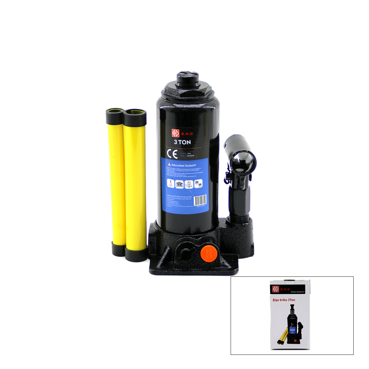 BHD-00370 3 Ton Şişe Hidrolik Kriko, ağır yüklerin kolayca kaldırılmasını sağlayan güçlü bir araçtır. Kompakt tasarımı ve dayanıklı yapısıyla dikkat çeker.