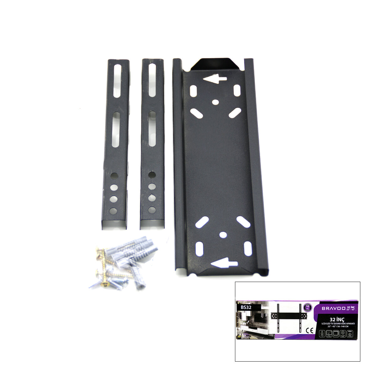 BRAVOO BS-32 Sabit TV Askı Aparatı, 32 ila 44 inç boyutlarındaki LCD ve LED televizyonlar için ideal bir montaj çözümüdür. Sağlam yapısı ve şık tasarımıyla televizyonunuzu güvenle duvara monte etmenizi sağlar.
