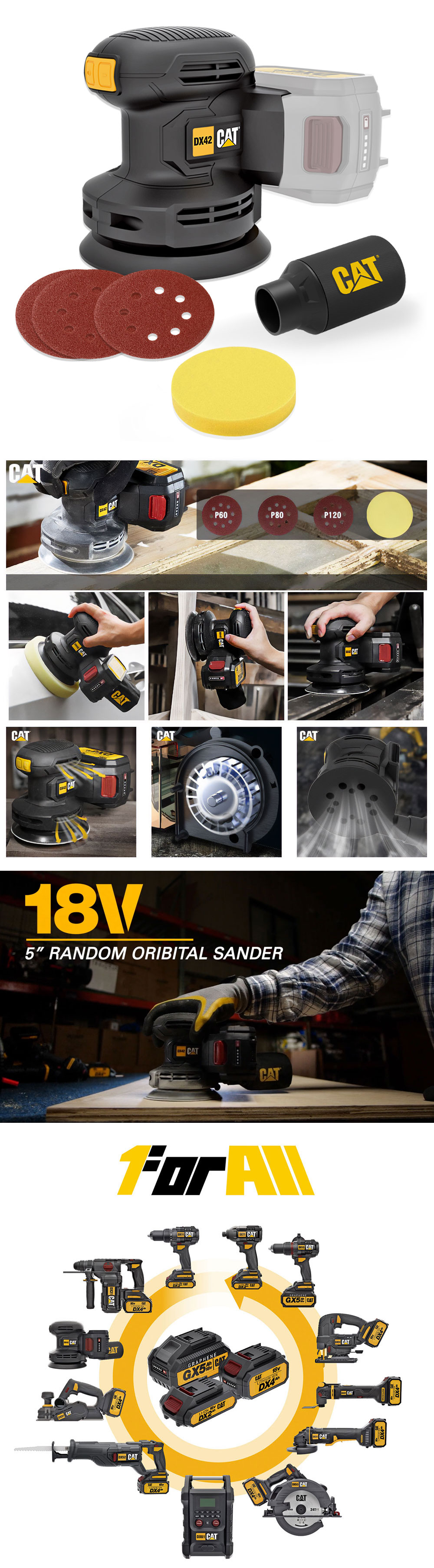 • CAT DX42B 18Volt 125mm Profesyonel Devir Ayarlı Eksantrik Zımpara (Akü Dahil Değildir)