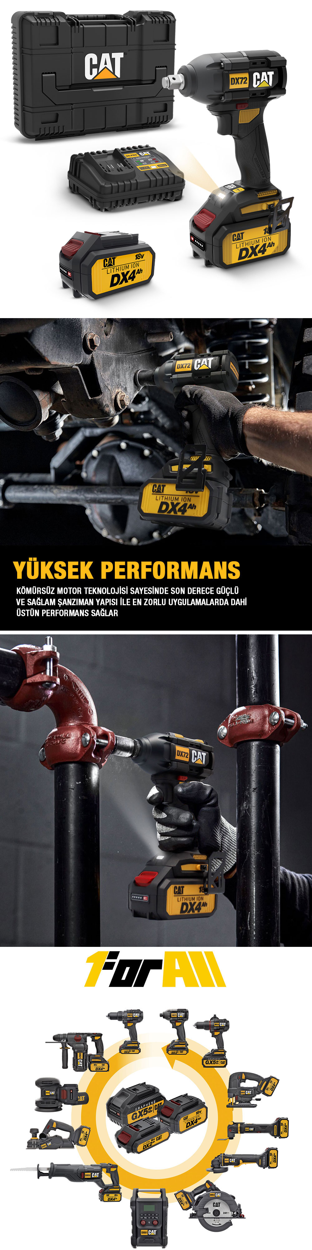 • CAT 1 FOR ALL Li-ion akü teknolojisi sayesinde 18Volt CAT akünüzle tüm 18Volt CAT şarjlı ürünlerini çalıştırabilirsiniz. 18Volt CAT akünüzle yüzlerce CAT şarjlı ürününü çalıştırabilirsiniz.