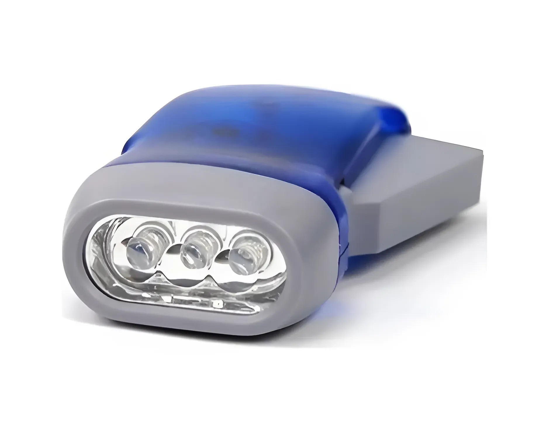 İçindeki mini akü tetik çalıştırılırken doluyor ve uzunca bir süre, sıkıp bırakma hareketi yapmadan led ler ışık verebiliyor; sadece düğmesine basarak fener çalışıyor.