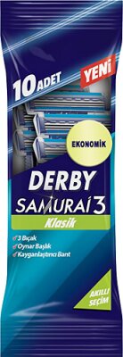 Derby Samuray 3 Bıçak Klasik Jilet, üstün tıraş performansı sunan bir üründür. Her bir poşette 10 adet jilet bulunur ve toplamda 10 paket ile sunulur.