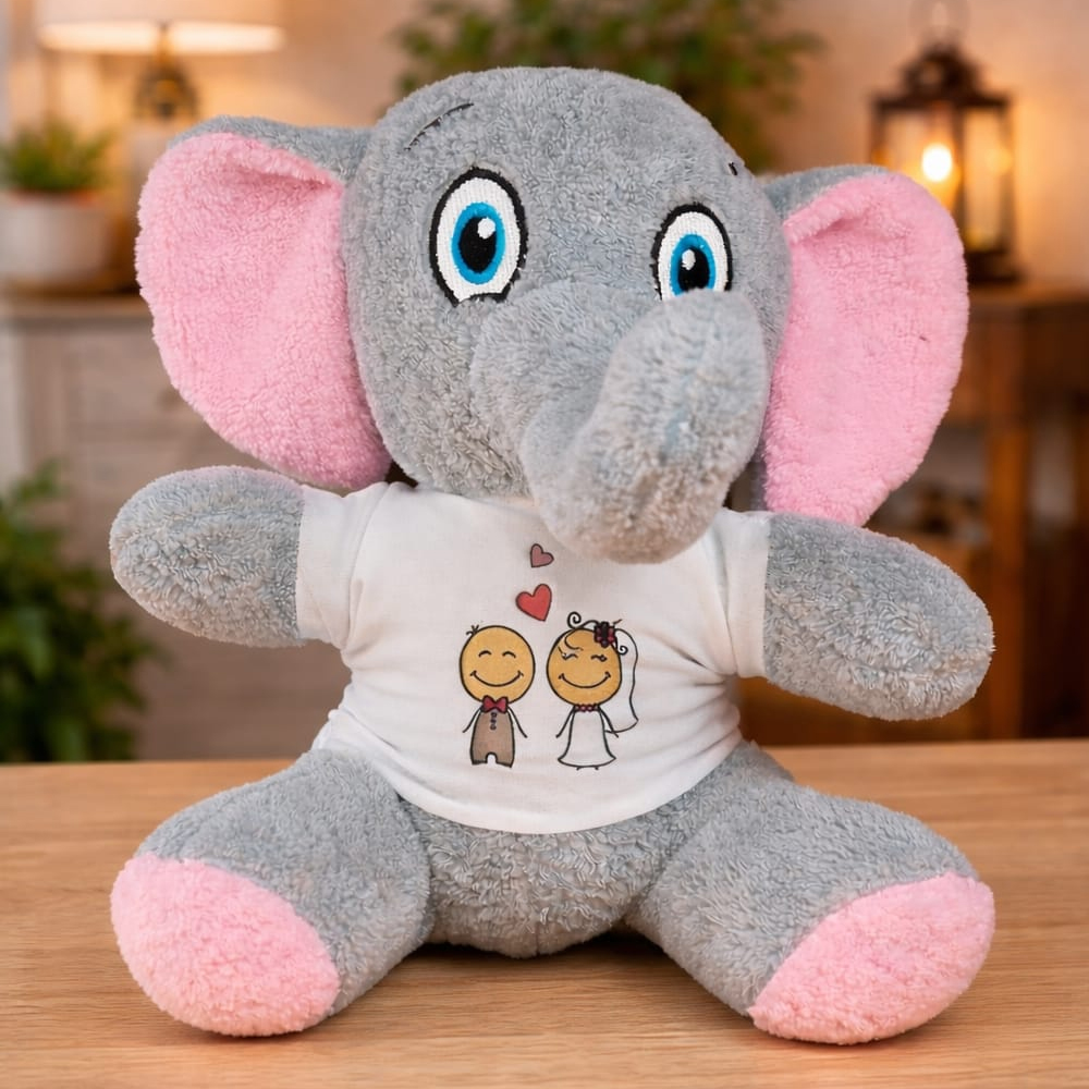 Gelin Damat Tasarım Tişörtlü Peluş Sevimli Fil - 252.00 TL