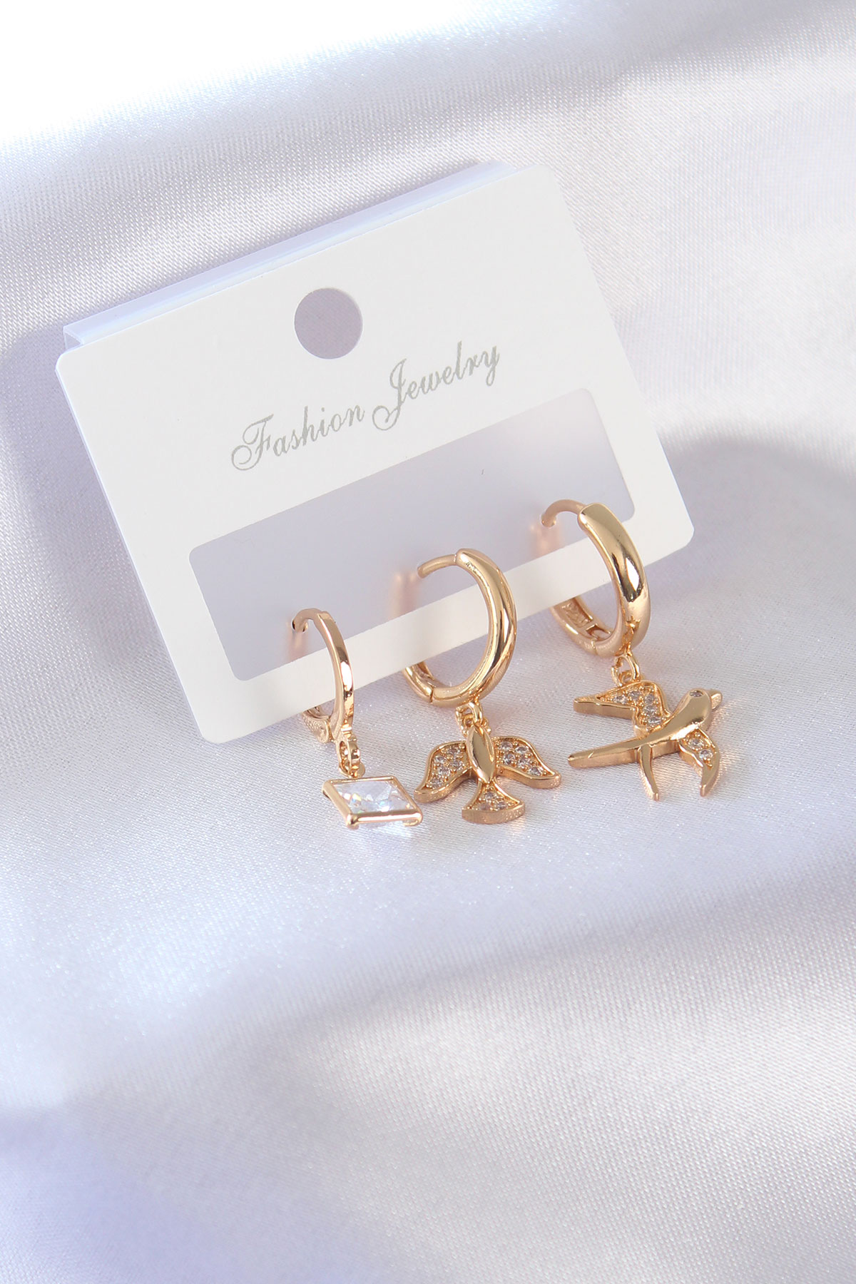 Gold Renk Kuş Figür Zirkon Taşlı Kadın Küpe - TJ-BKP7375 - 75.00 TL