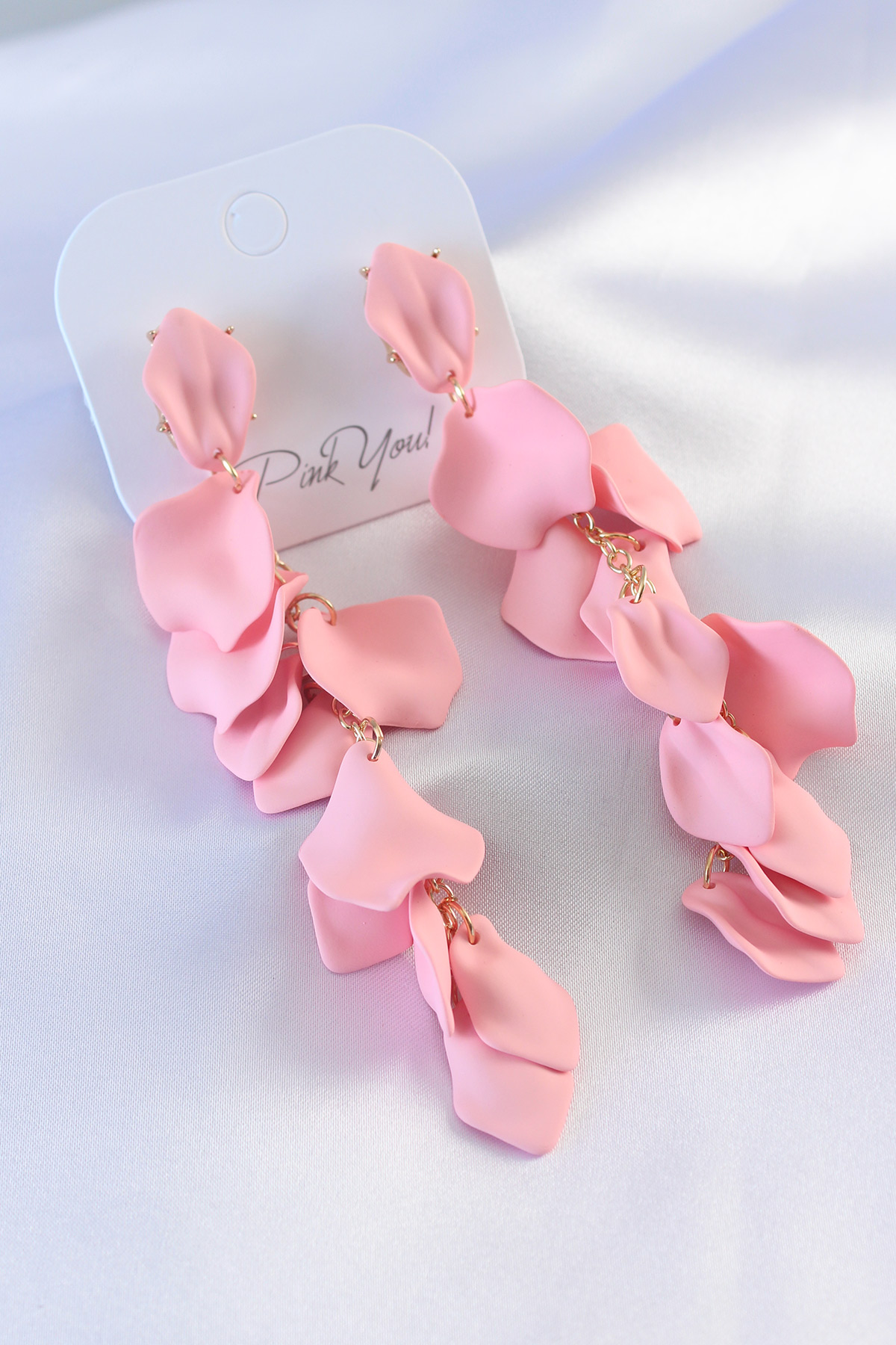 Gold Renk Pembe Yaprak Model Kadın Küpe - TJ-BKP7303