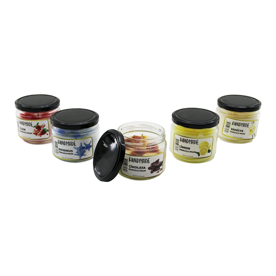 Handmade büyük cam kavanoz kokulu mum, evinizin atmosferini değiştirecek harika bir üründür. Limon, çikolata, çilek, okyanus ve vanilya gibi çeşitli kokuların karışımını sunar.