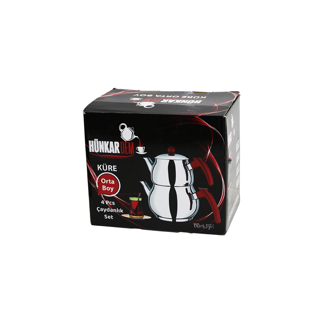 Hünkardem Orta Boy Küre Çelik Çaydanlık Seti, geniş aileler için ideal bir çaydanlık çözümüdür. Şık tasarımı ve renkli bakalit kulpları ile mutfağınıza estetik bir dokunuş katar.