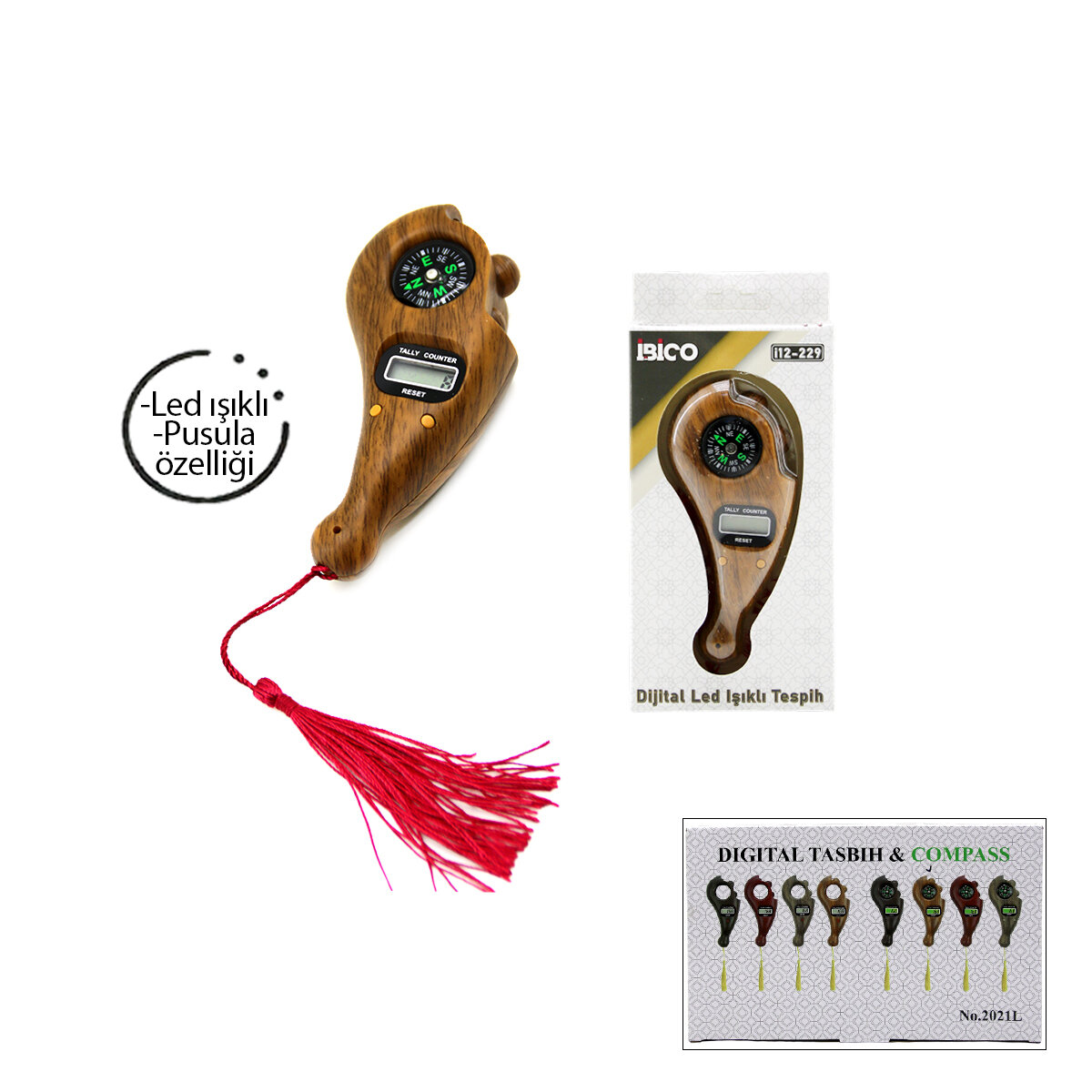 İbico İ12-229 No-2021L, dijital ve ışıklı özellikleri ile öne çıkan lüks bir zikirmatik ve tesbih çevirme cihazıdır. Pusula özelliği ile de dikkat çeken bu ürün, modern tasarımı ile kullanıcıların beğenisine sunulmaktadır.