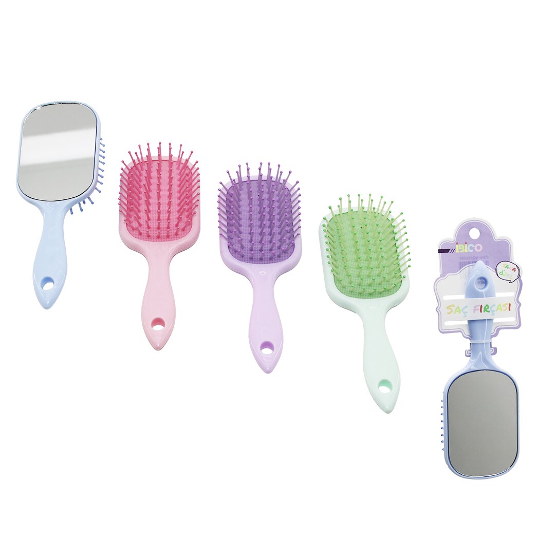 İbico İ15-055 Dikdörtgen Aynalı Çocuk Saç Fırçası, çocukların saç bakımını pratik hale getiren bir üründür. Renkli plastik sapı ve entegre aynası ile dikkat çeker.