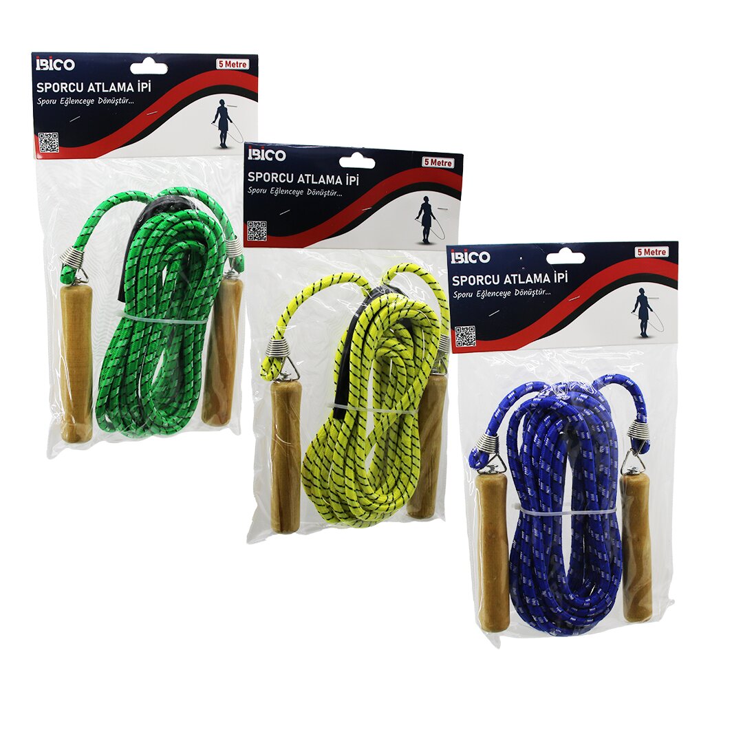 İBİCO İ19-022 ( AHŞAP SAPLI ) ATLAMA İPİ RENKLİ ( 5MT )*60 - 203.21 TL