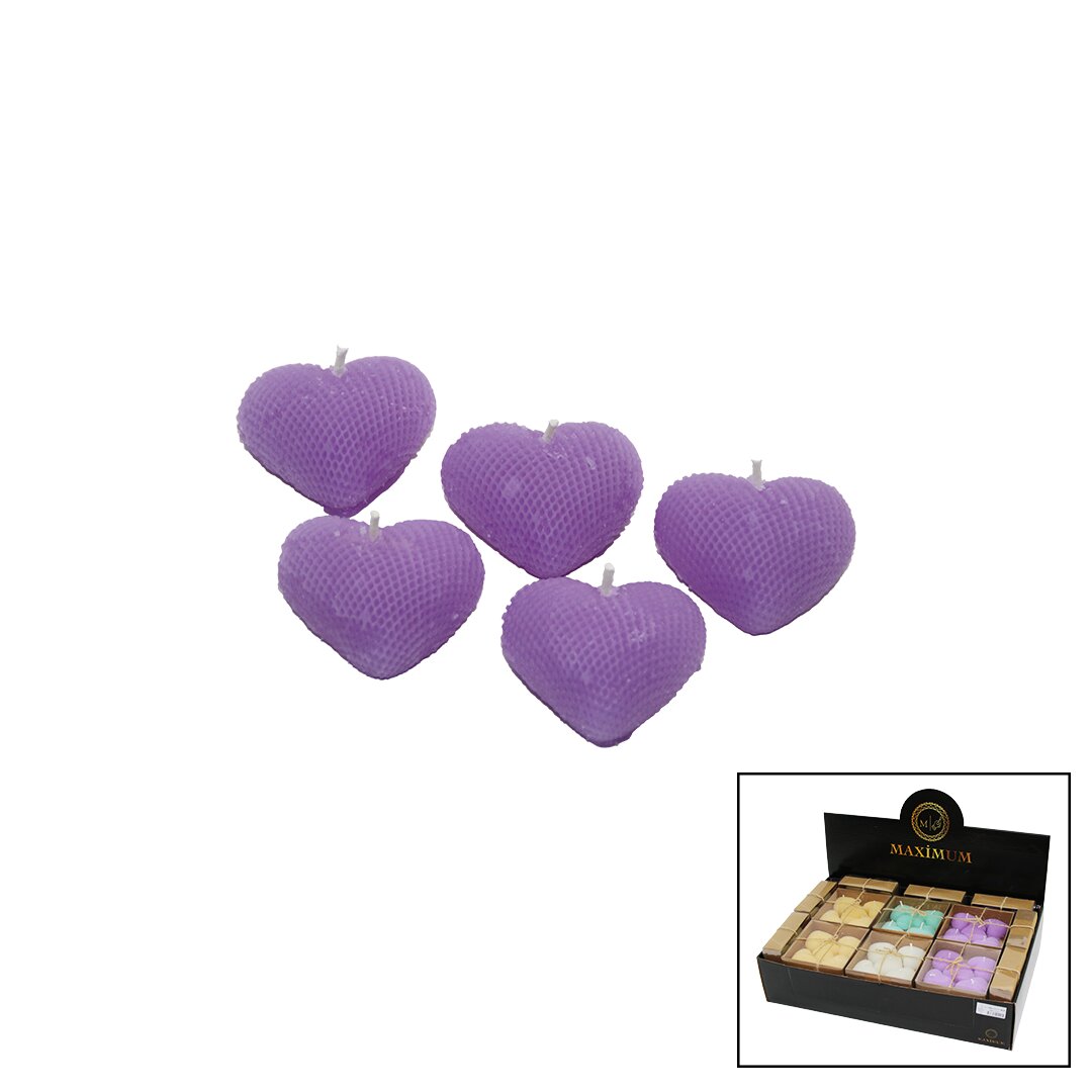 Maximum MAX-2415, 5 adet mini kalp modelinden oluşan bir mum setidir. Renkli ve kokulu yapısıyla dikkat çeker, her ortama romantik bir hava katar.