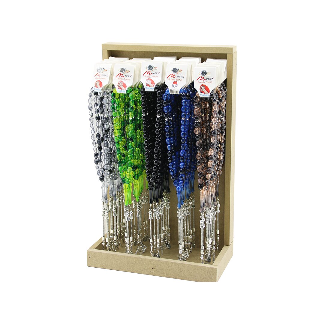 Meva M-65 Tesbih, akrilik malzemesi ve metal simge imameli yapısıyla dikkat çeker. Ahşap standı, tesbihinizi sergilemek için ideal bir çözümdür.