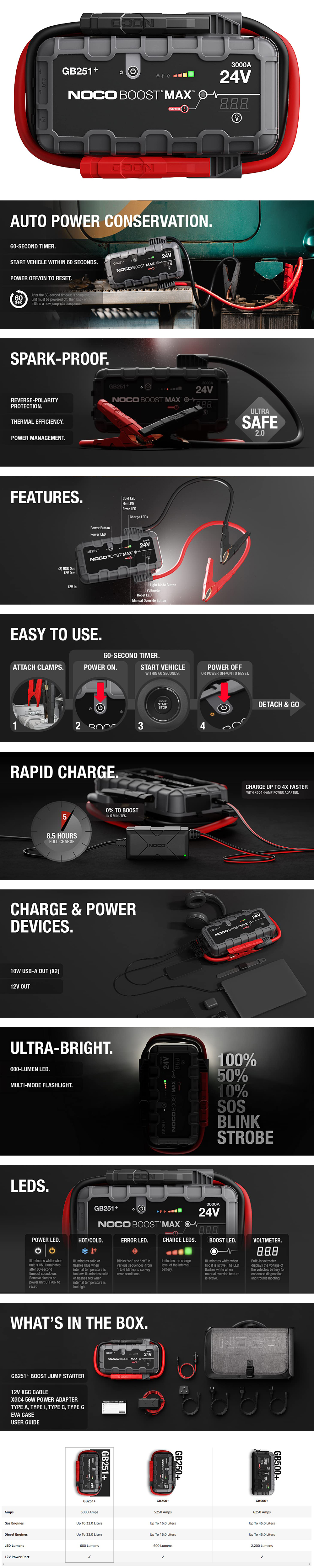 · Yüksek hacimli Dizel, Benzin ve Gaz motorlu araçlarda 24Volt akülerine takviye yapar, GB251 BoostMax muadil ürünlere kıyasla %400 daha küçük ve daha hafiftir,
