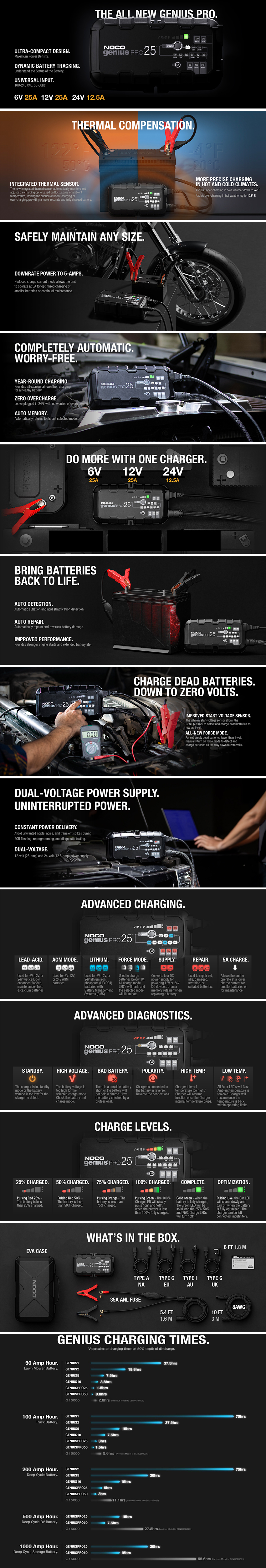 · NOCO GENIUSPRO25 6V/12V/24V 1000A Akıllı Akü Şarj ve Akü Bakım/Desülfatör/Power Supply