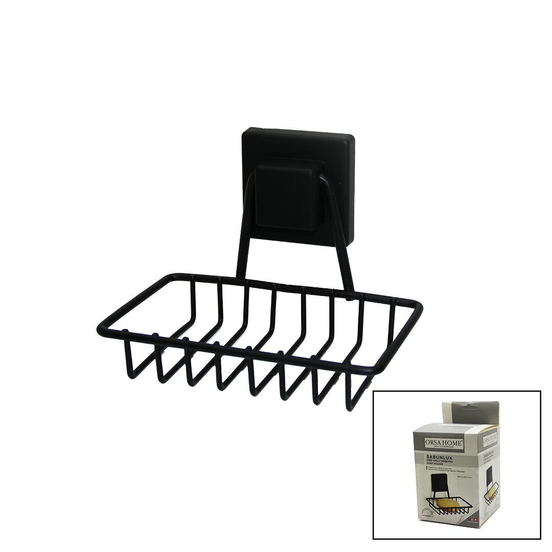 ORSA-905 model siyah metal katı sabunluk, kare güçlü yapışkanlı tasarımı ile banyonuzda şıklık ve düzen sağlar. Bu sabunluk, duvarlarınıza zarar vermeden kolayca monte edilebilir.