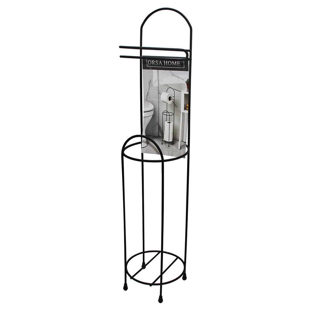 ORSA-976 Siyah & Metal Ayaklı WC Kağıtlık, modern banyolar için şık ve işlevsel bir çözüm sunar. Yedekli tasarımı sayesinde ekstra tuvalet kağıdı saklama imkanı sağlar.