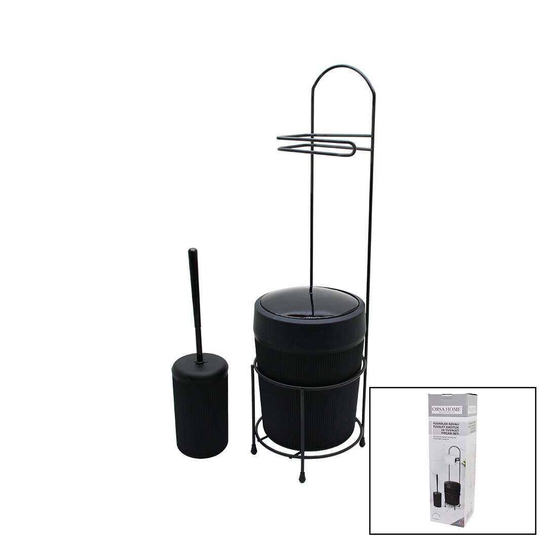 Orsa-990 Siyah & Metal Yuvarlak Kovalı WC Kağıtlık & WC Fırça Seti, banyonuzda hem şıklık hem de işlevsellik arayanlar için tasarlanmıştır. Modern tasarımı ile dikkat çeker.