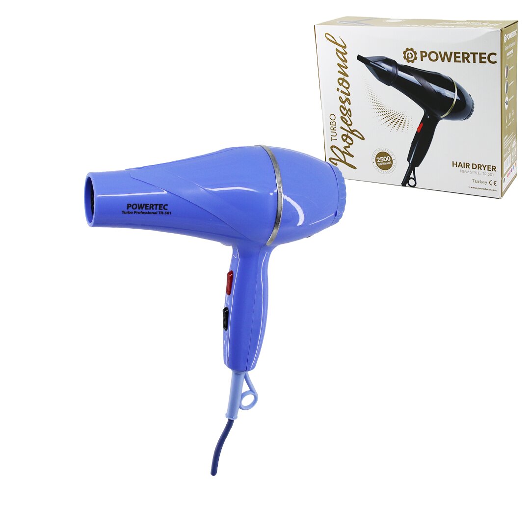 Powertec TR-501, 2500W gücünde, mavi renkli saç kurutma ve fön makinesidir. Yüksek performansı ile saçlarınızı hızlı ve etkili bir şekilde kurutur.