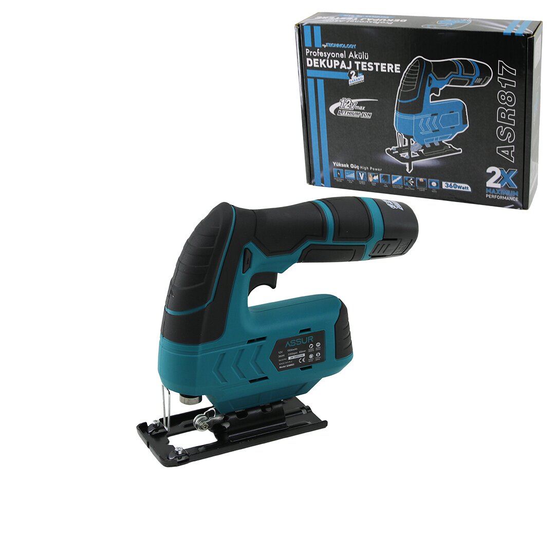 Profesyonel ASR-817 Şarjlı Dekupaj Testere, sunta ve diğer malzemeleri kesmek için ideal bir araçtır. 12V ve 360W gücü ile yüksek performans sunar.