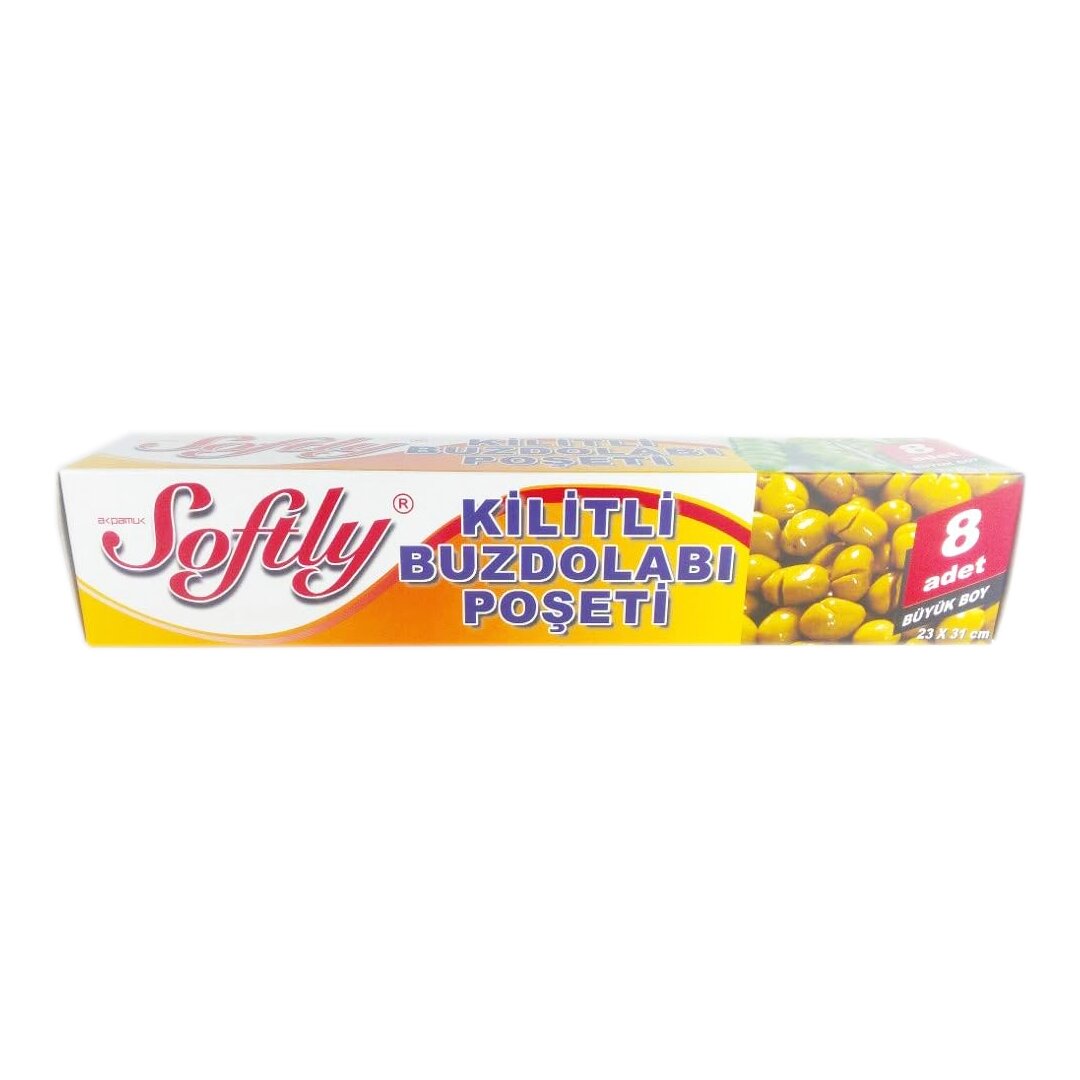 Softly Kilitli & Büyük Buzdolabı Poşeti, yiyeceklerinizi güvenle saklamanızı sağlar. 8 adetlik paket içeriği ile uzun süreli kullanım sunar.