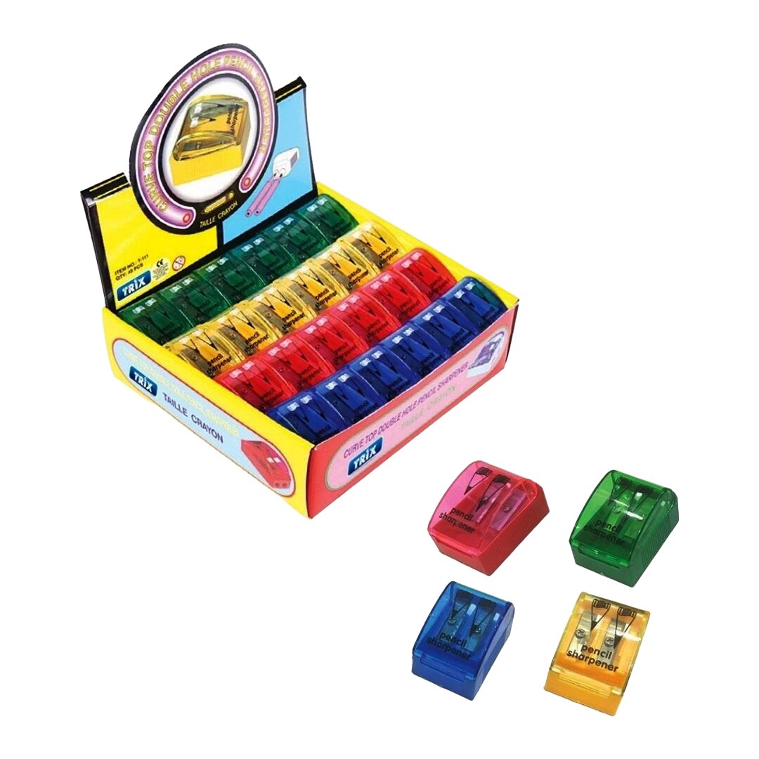 TRİX T-111 ( İKİLİ ) KAPAKLI RENKLİ KALEMTIRAŞ PLASTİK*48X30