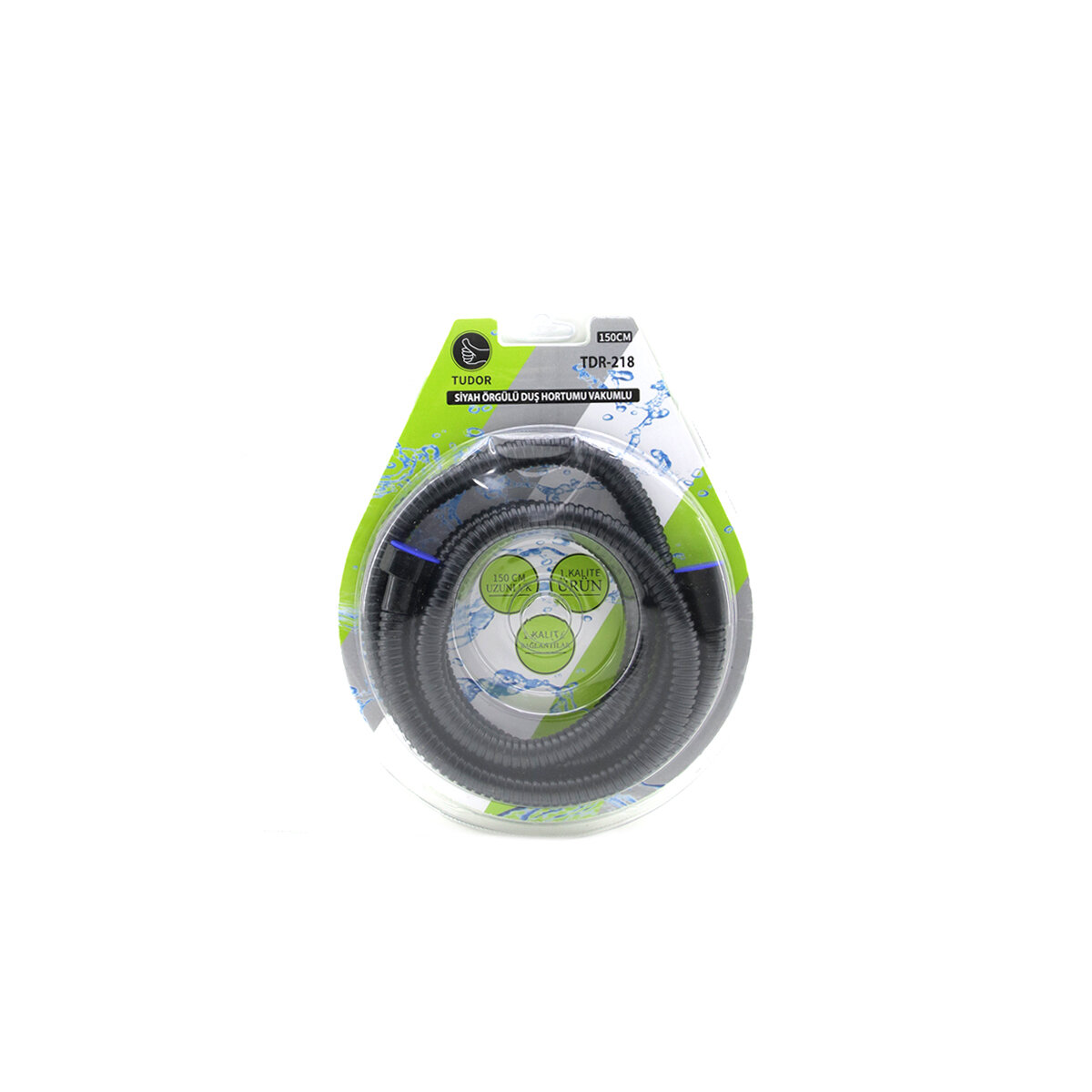 Tudor TDR-218-TH-213 Siyah Örgülü Duş Hortumu, banyolarınızda şıklık ve dayanıklılığı bir araya getiriyor. 150 cm uzunluğundaki bu hortum, vakumlu ambalajı sayesinde kolay taşınabilir ve saklanabilir.