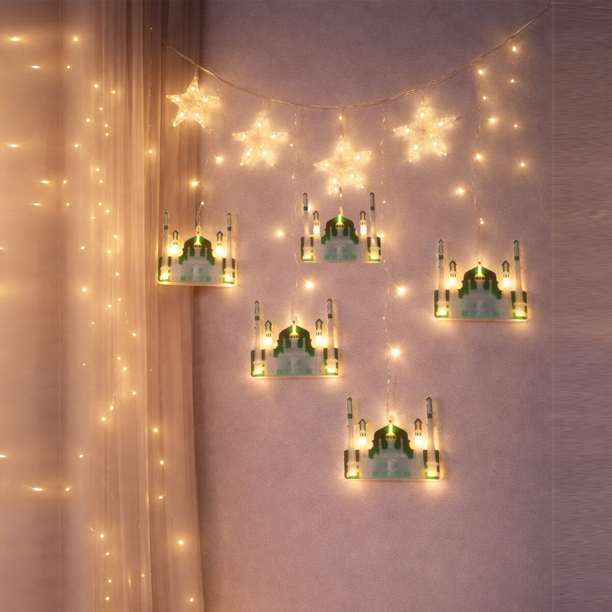 WINNBOSS EKL-09-05 modeli, yeşil cami ve yıldız motifleriyle tasarlanmış özel bir dekoratif lamba ve perde LED setidir. Ramazan ayının manevi atmosferini evinize taşımak için mükemmel bir seçimdir.