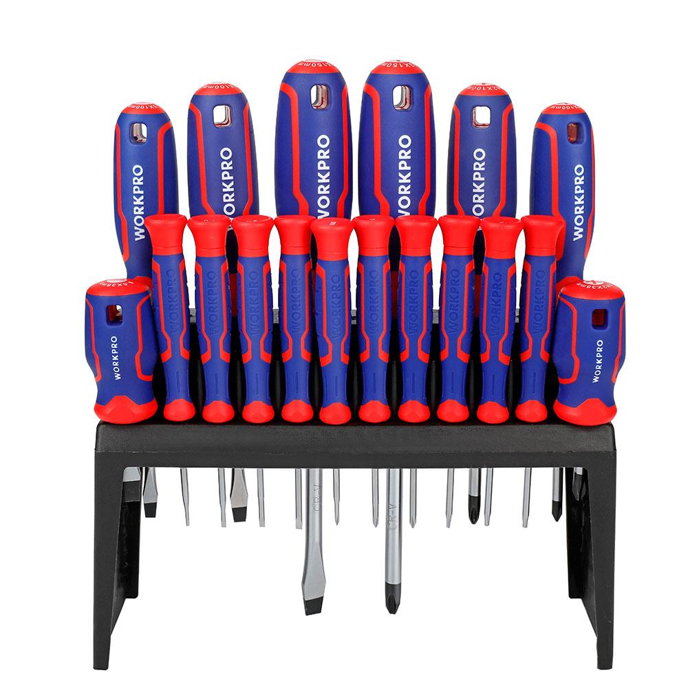 • WORKPRO WP200506 18 Parça Duvar Askı Aparatlı Profesyonel CR-V Manyetik Tornavida Seti