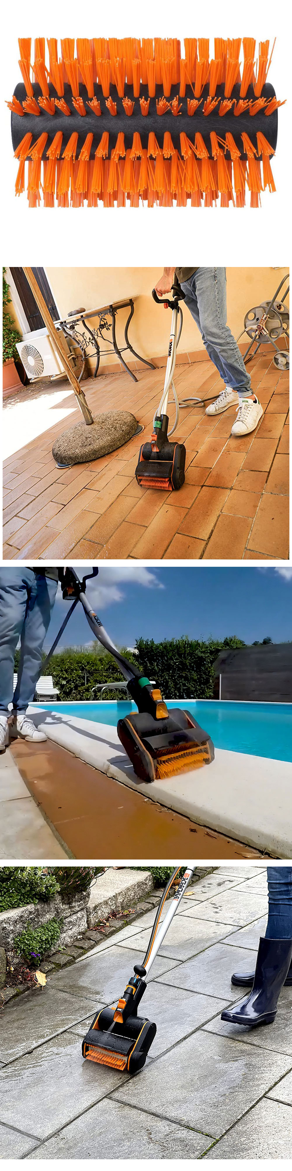 · Sert fırça kılları sayesinde kaldırım ve parke taşları, asfalt yüzeyler, doğal taş, tuğla, mermer, kalebodur gibi sert ve derzli yüzeylerin temizliği için mükemmeldir.