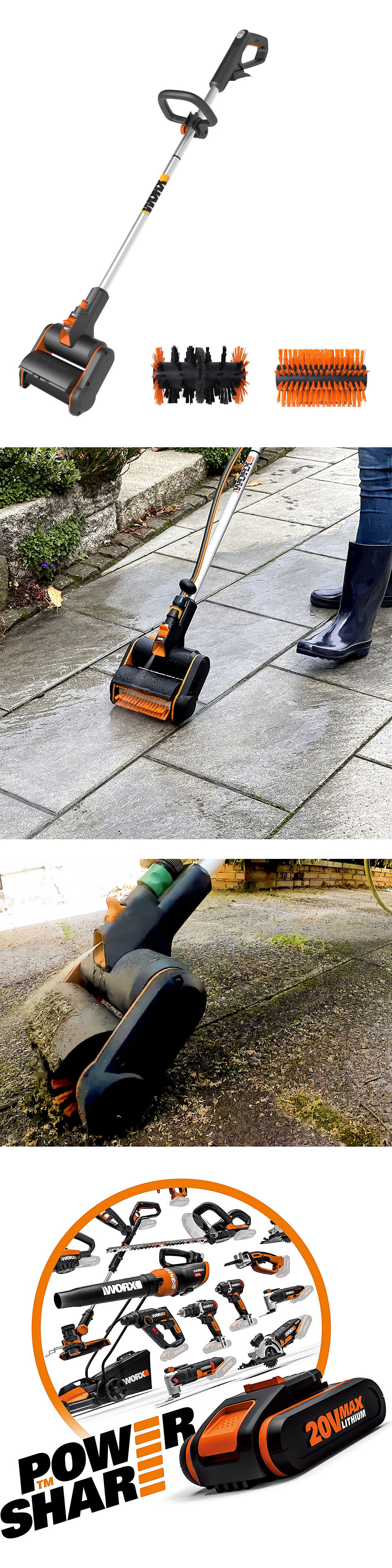 · Worx 20Volt 4’ü1 arada çok amaçlı şarjlı zemin fırçası ile fayans, parke taş, asfalt, ahşap veranda ve kompozit zemin kaplaması dahil her türlü sert yüzeyi temizleyebilen döner fırça tasarıma sahiptir. Aynı zamanda suni çimlerin temizliği, buz veya karlı zeminleri temizlemek için son mükemmeldir.