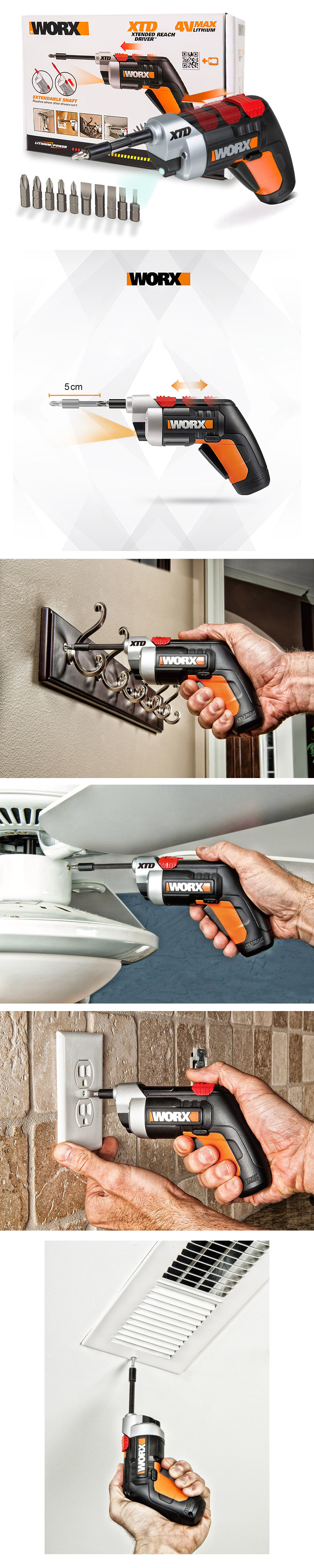 · Patentli Xtended Reach Driver teknolojisi sayesinde uzayabilen vidalama şaftı, diğer tornavidaların erişemeyeceği dar alanlarda kolay kullanım sağlar.