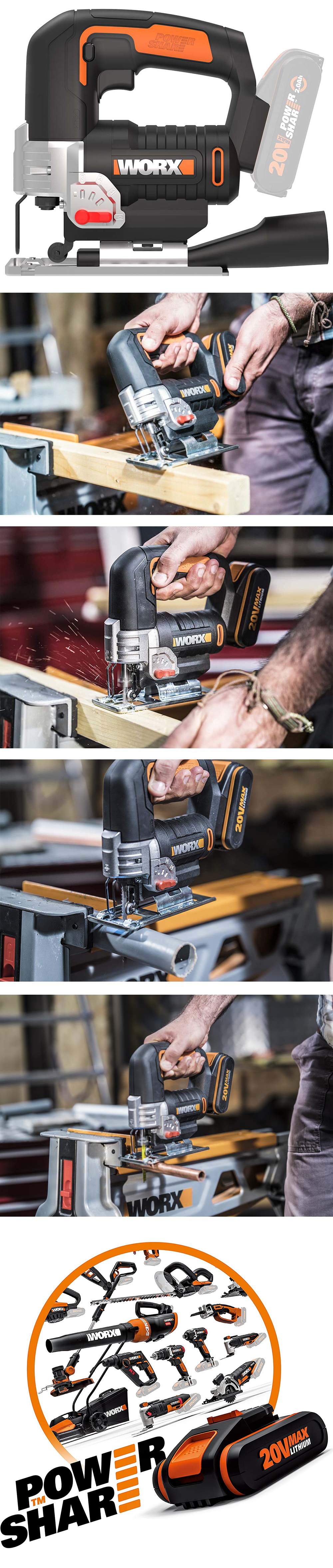 · WORX WX543.9 20Volt Profesyonel Dekupaj Testere (Akü Dahil Değildir)