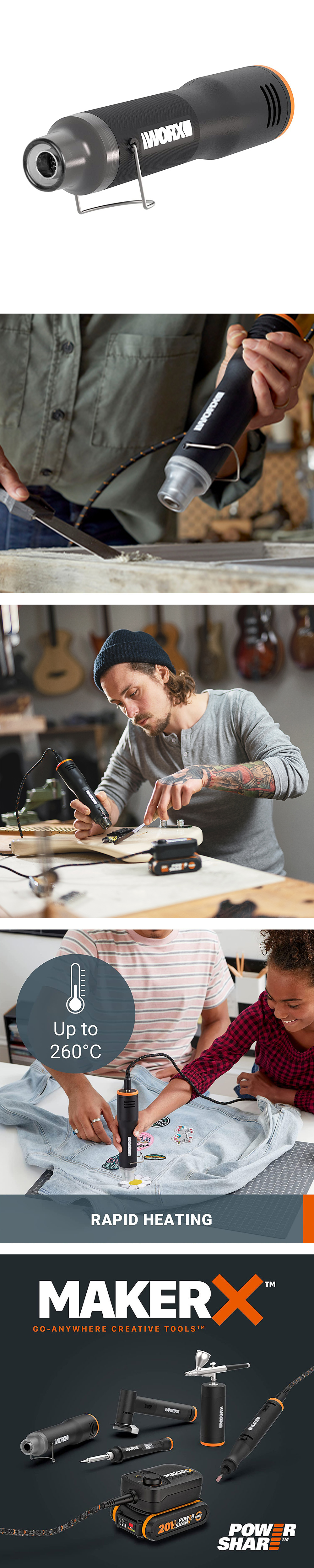 · WORX WX743.9 MAKERX 20Volt Profesyonel Sıcak Hava Tabancası (Akü Dahil Değildir)